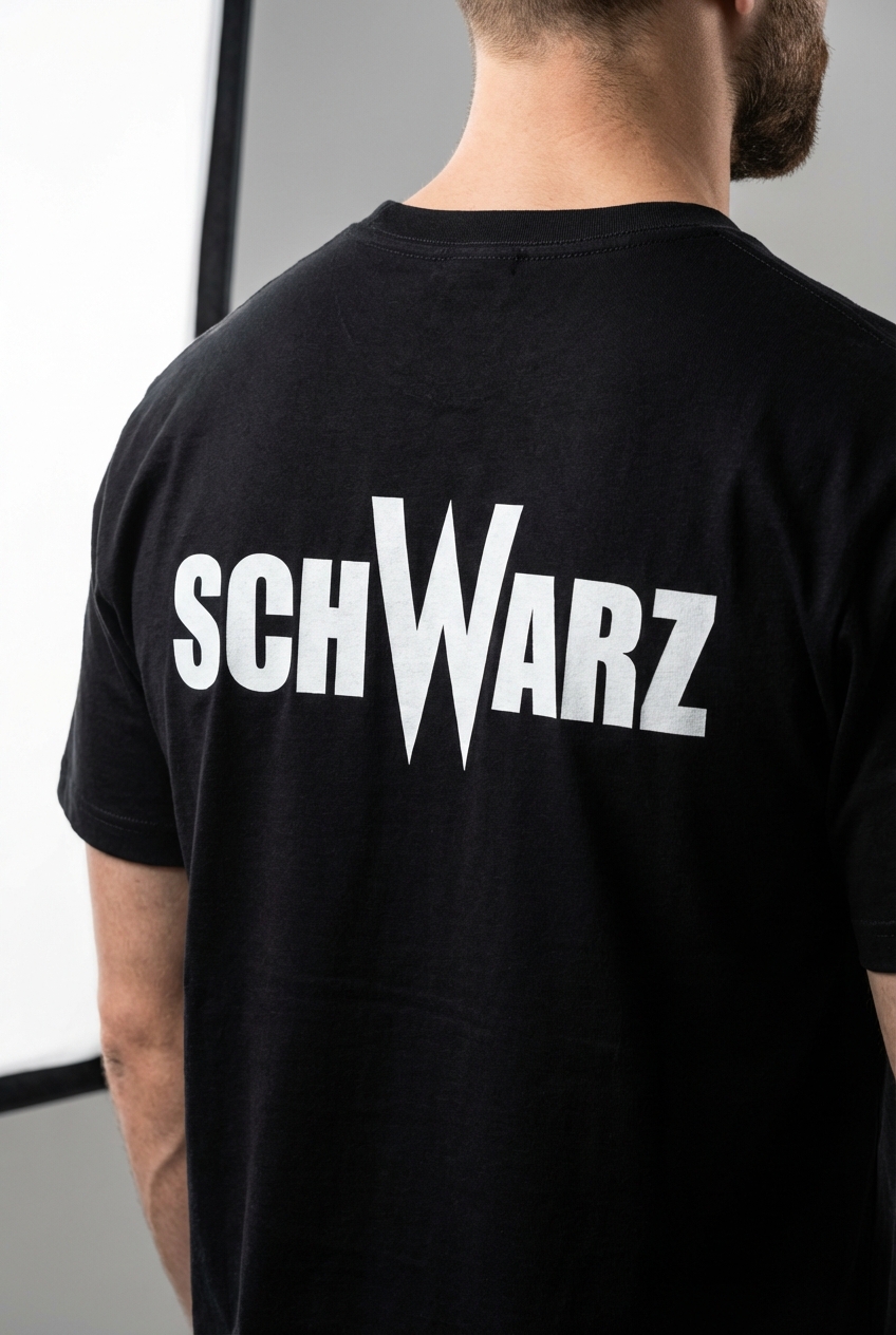 T-Shirt Schwarz-Logo; 100% Baumwolle. Verfügbar in schwarz und weiß.